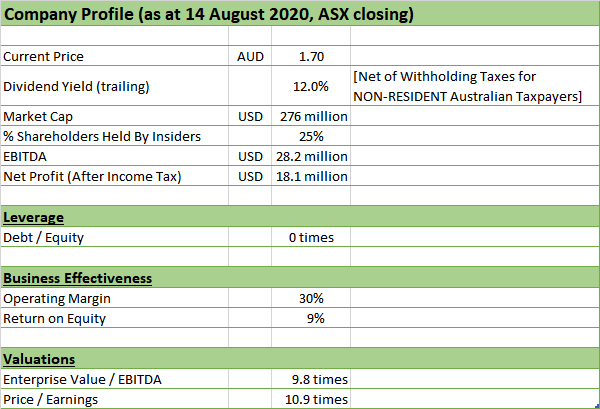 Well, unfortunately, the “word had passed around” and my stock recommendation has “got away.” It certainly was worth “a thousand pound(s)” as Banjo Paterson would put it, but “there was movement at the station” as Mr. Market finally took notice of its great yield resulting in the stock price rallying on Thursday from Tuesday’s close. The rally was triggered by the company announcing its latest annual results and dividend.
